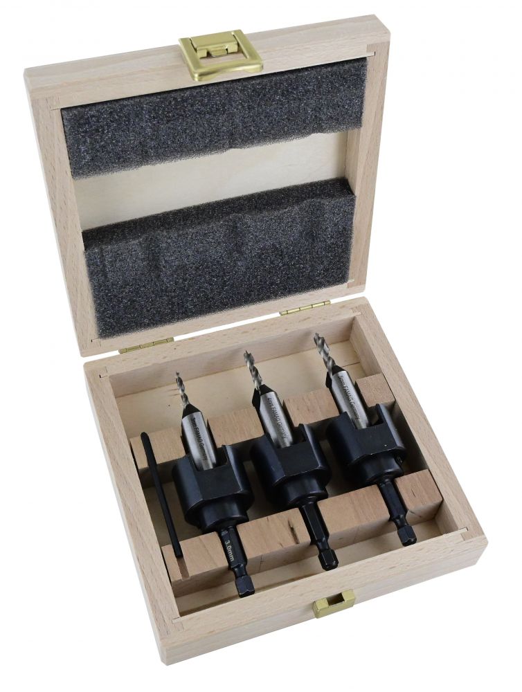 Famag 3577 Drill Countersink 3 - 5 mm plus Depth Stop 3 pcs in Wooden Case