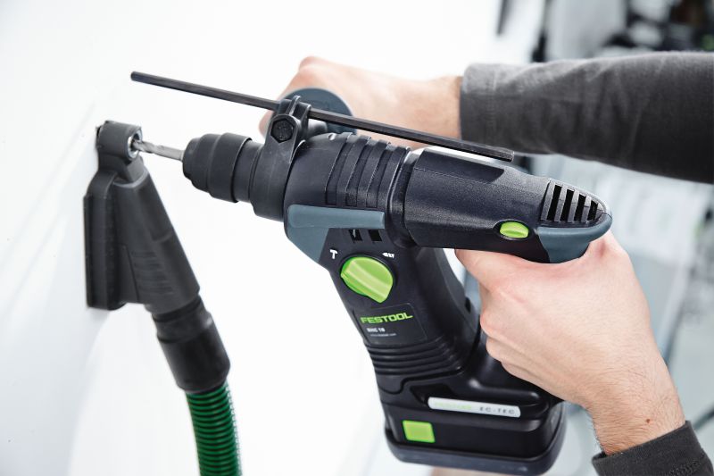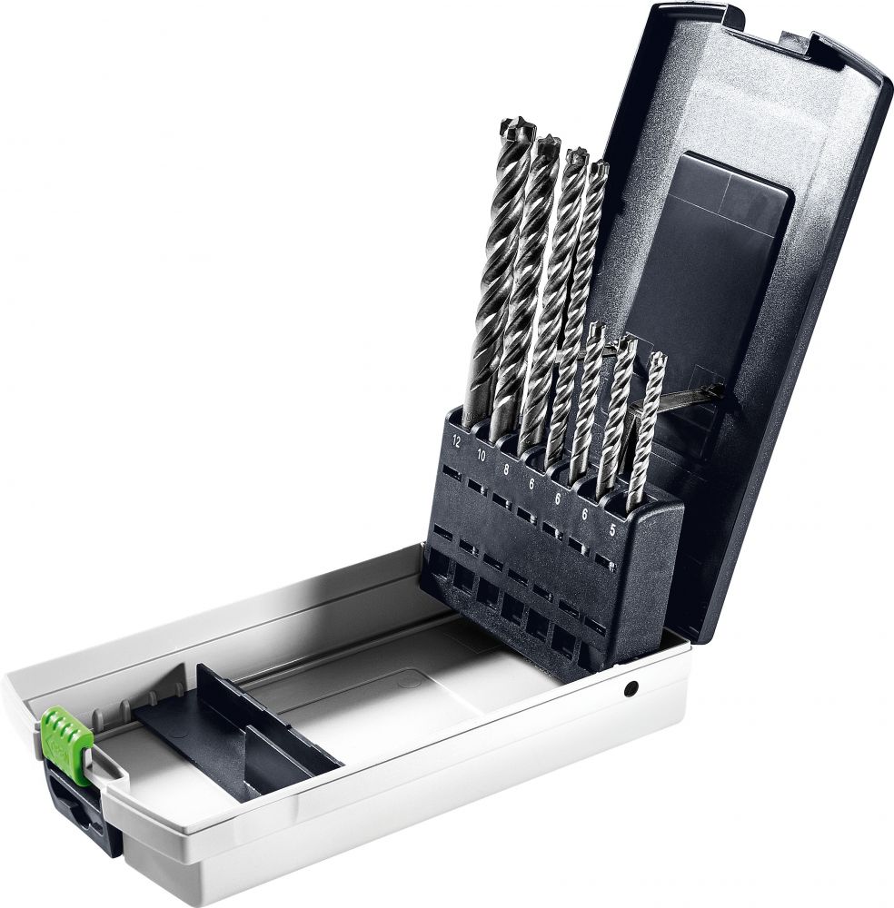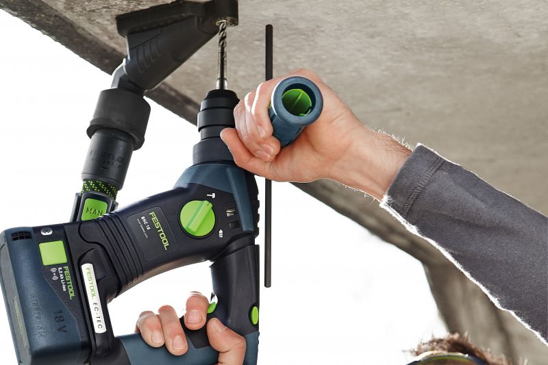 - Festool hammer drills impress with their outstanding service life and high efficiency. The reinforced drilling head is manufactured from high-quality solid carbide. The four-edge design ensures optimum safety when drilling reinforced concrete in particular, as the drill bit does not catch on the reinforcement. The drill bit can be positioned precisely and accurately thanks to the 90° sharp centring point. The wide dust outlets optimally remove the drilling dust, enabling a high drilling speed.