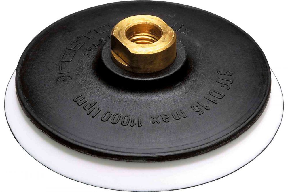 The sanding pad is suitable for the RAS 115. The sanding pad has a hard version and displays high edge strength. It is ideally suited to processing narrow edges and even surfaces. It is secured via an M14 connecting thread.
