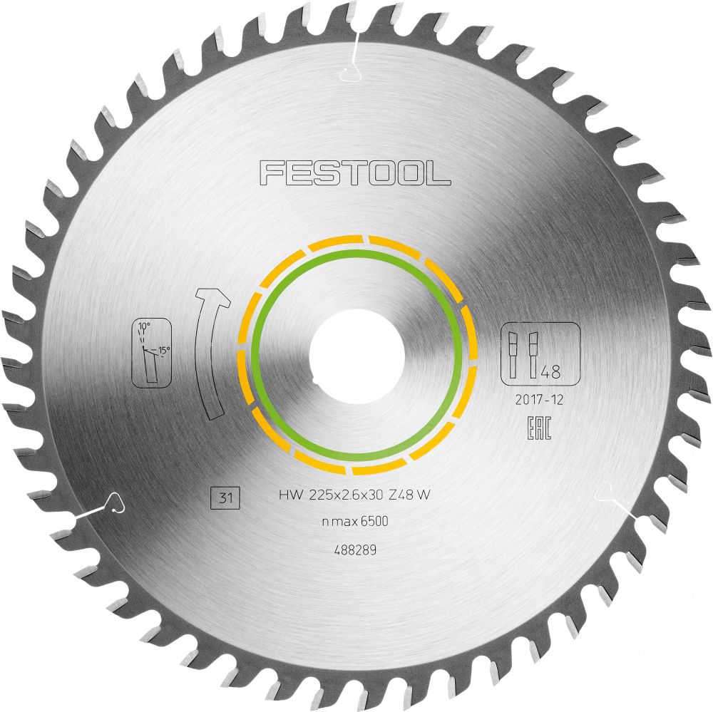 Festool 488289 Saw Blade WOOD FINE CUT HW 225 dia x 2.6 kerf x 30 bore W48