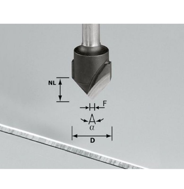 Festool 491444 V-Groove Cutter - 90 Deg x 18mm Dia x 8mm Shank HW for Aluminium