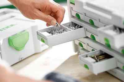 For storage in drawers: Small parts such as nails, dowels or screws can be stored just as neatly as hand tools. SORTAINERS with up to twelve drawers are the ideal supplement to the SYSTAINER portfolio.