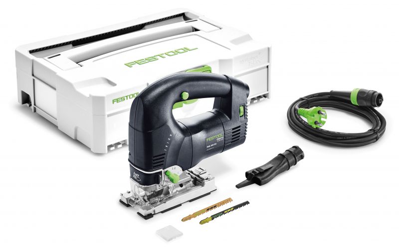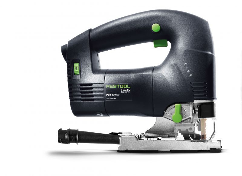 The Festool TRION PSB 300 pendulum jigsaw – thoroughly robust, powerful and ergonomic. The patented three-way saw blade guide with parallel adjustable carbide jaws guarantees absolute precision while the splinter guard reduces reworking. And, with perfect ergonomics and an ideal centre of gravity, the Festool TRION PSB 300 is also easy and safe to operate with just one hand.