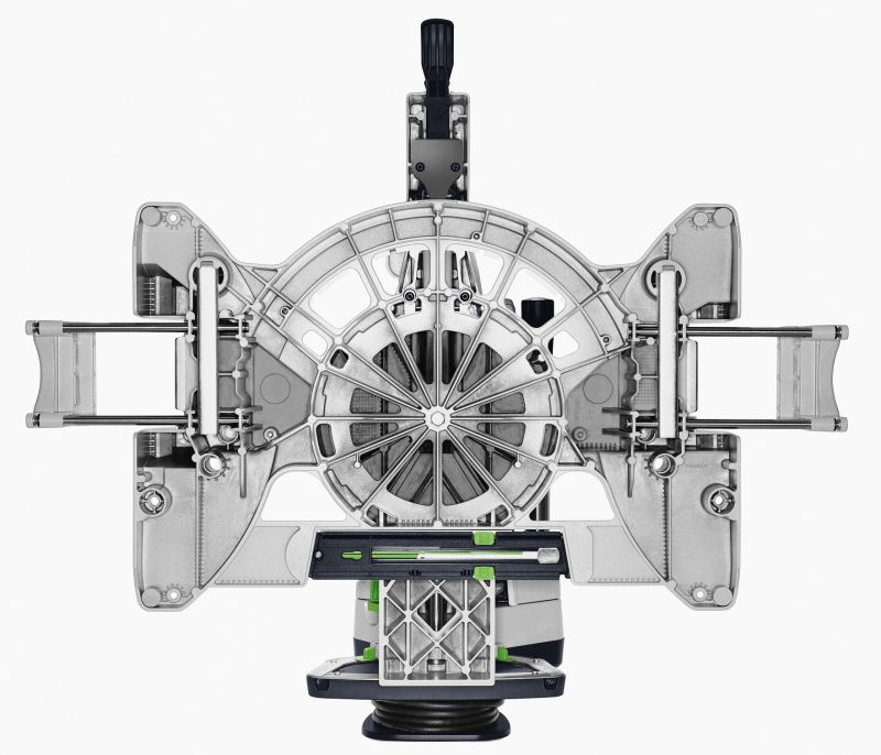 Fine adjustment of the saw blade angle accurate to the millimetre from the front of the machine