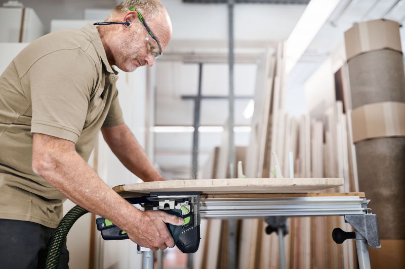 Changing saw blades without using tools: Adapting to the working material is worth it because the results are more accurate and the saw blades last much longer. The Festool system is therefore designed to reduce set-up times, e.g. with single-handed saw blade changing.