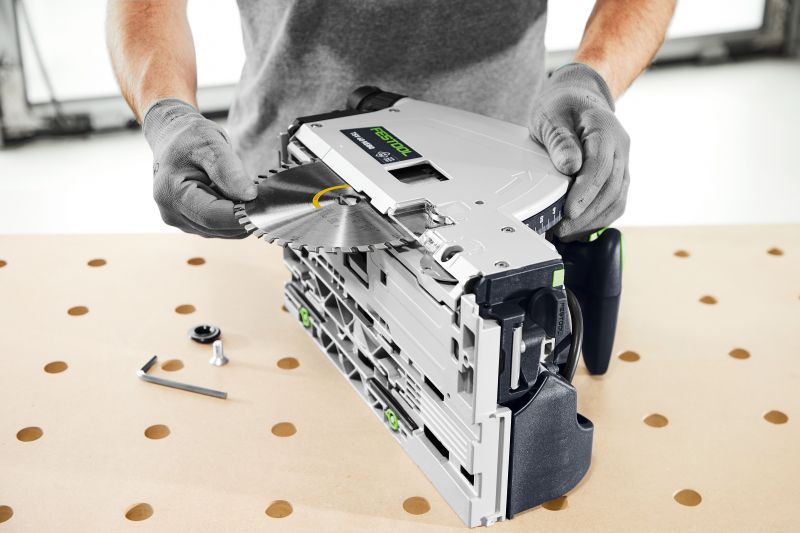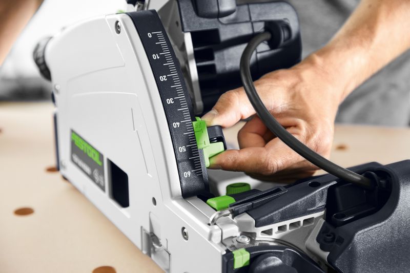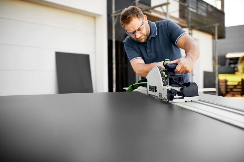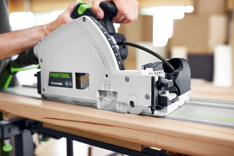 Since 1980, Festool plunge-cut saws have been known for their reliable quality and absolute precision. Our objective: The perfect cut. With the TSV 60 K plunge-cut saw with scoring function, we have achieved exactly that. Splinter-free sawing on both sides now from the very first cut. Coupled with the built-in KickbackStop, you and your workpiece are protected from dangerous kickbacks and thanks to the ideal combination of Festool system accessories, your work can always be precise and tailored to requirements, even when on the move. With the TSV 60 K, workshop-quality results can be replicated on the construction site – as good as with a stationary machine.
