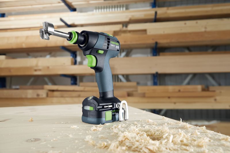 Impressive performance: The TXS 12 also performs impressively when working with Forstner drill bits up to 35 mm and screwdriving up to 6x200 mm in softwood (reference value for countersunk screws with partial thread in softwood. The maximum screw size that can be used varies depending on the screw type and wood type).