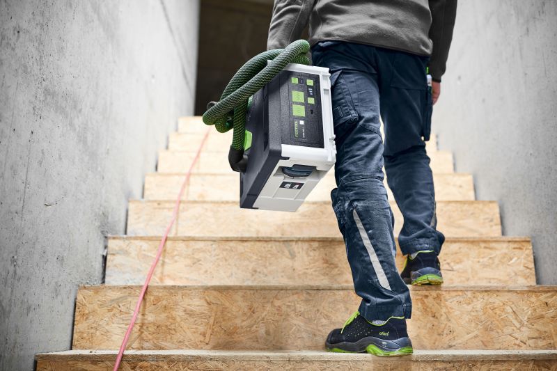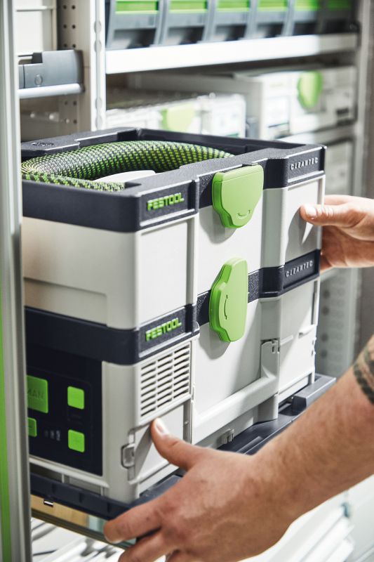Easy to transport: Festool Systainer format and shoulder strap make the extractor easy to carry. This leaves your hands free for any other materials or tools you might need.