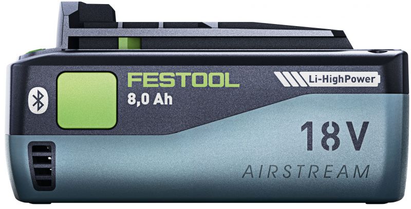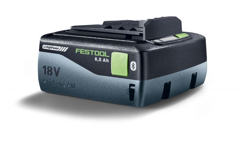 - Bluetooth® lithium-ion (Li-ion) battery pack with AIRSTREAM function for all Festool 18 V cordless tools (except ETSC 125, RTSC 400, DTSC 400, CTC SYS)