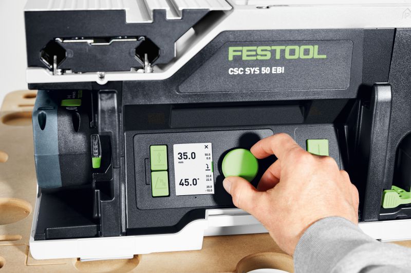 • More precise than any yardstick: The desired sawing height and angles are accurately entered to within 0.1 mm via the digital display and the dial. This adjusts the saw blade automatically.