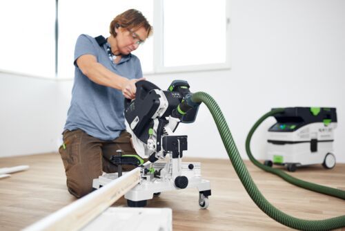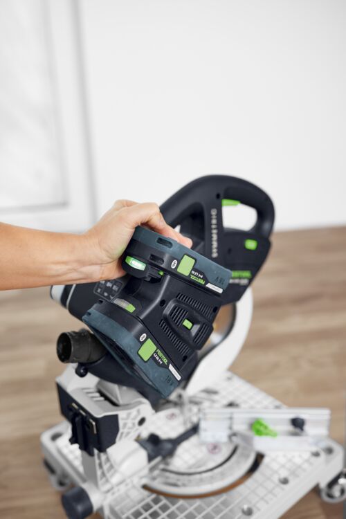 Achieve ideal results more quickly. With the SYMMETRIC, you can saw strips twice as fast as with a regular compound mitre saw – accurately and without making calculations. You can use the bevel to easily obtain interior and exterior angles and transfer them to the symmetrical stop system. You can saw exactly along the bisector, with one setting for cutting both strips of a corner with precision. The rollers allow you to move the cordless compound mitre saw into the correct position in an instant and, in combination with the dual battery system, make the saw as mobile as you require. And there are no annoying cables – for an optimal work process, even in small spaces.