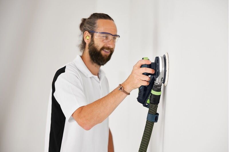 Whether you are working in a workshop or at a hard-to-reach location, the ETSC 2 cordless eccentric sander offers maximum freedom of movement when sanding. The integrated LED light ring improves your view of the surface and reveals any unevenness during sanding. The eccentric sanding motion creates outstanding surface quality – with no need for costly rework. The powerful 4.0 Ah battery enables fast work progress and is compatible with your 18V cordless machines and battery chargers. Its low height means that the sander lies directly in your hand – for convenient sanding, whether you are working on the plane or overhead.