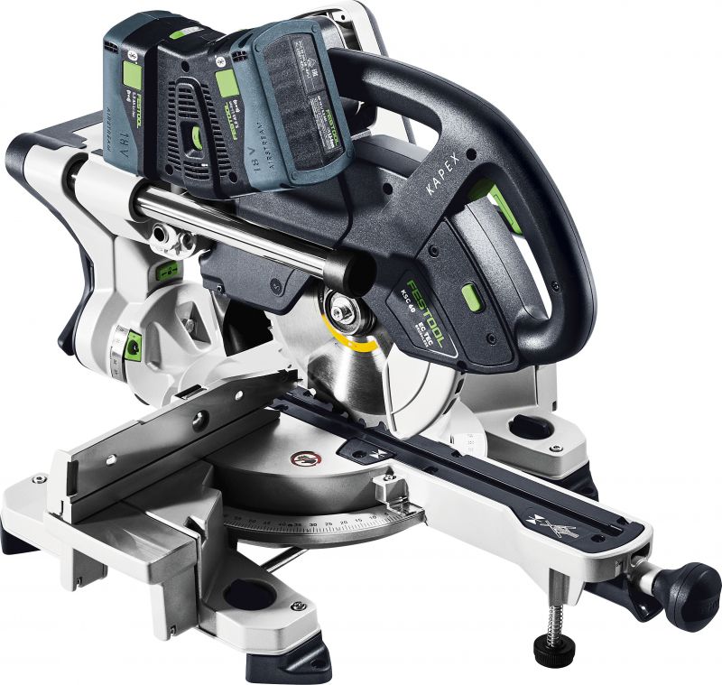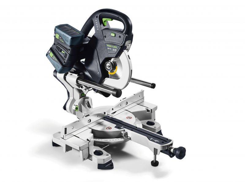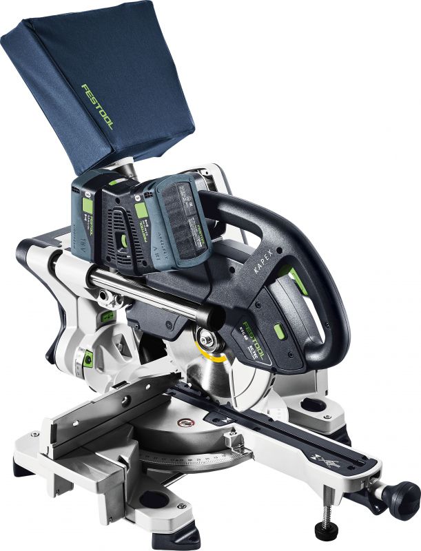 The Festool KAPEX KSC 60 cordless sliding compound mitre saws produce unbeatably precise cross cuts – in an enormous range of applications with mitre angles of up to 60° on each side and bevel angles of up to 47° on each side. The twin-column guide with two bearings ensures that the saw blade is guided smoothly and with precision whichever setting is chosen: This makes every cut perfect, without wobbles or juddering. In conjunction with the dual battery system, the brushless EC-TEC motor provides virtually unlimited endurance and is enough for all typical applications for an entire day's work. Clever details such as the speed preselection, saw blades for every application, bevel, ergonomic underframe and chip collection bag create the conditions for ergonomic, healthy and highly professional work.
