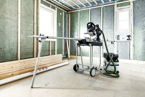 The Festool KAPEX KSC 60 cordless sliding compound mitre saws produce unbeatably precise cross cuts – in an enormous range of applications with mitre angles of up to 60° on each side and bevel angles of up to 47° on each side. The twin-column guide with two bearings ensures that the saw blade is guided smoothly and with precision whichever setting is chosen: This makes every cut perfect, without wobbles or juddering. In conjunction with the dual battery system, the brushless EC-TEC motor provides virtually unlimited endurance and is enough for all typical applications for an entire day's work. Clever details such as the speed preselection, saw blades for every application, bevel, ergonomic underframe and chip collection bag create the conditions for ergonomic, healthy and highly professional work.