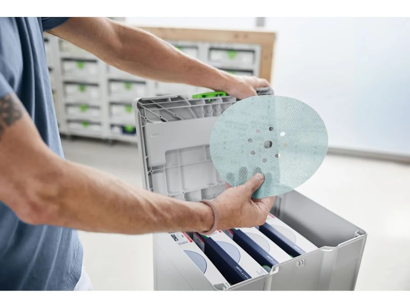 The Abrasives Systainer is the perfect addition to your long-reach sander. With its wide range of grit sizes, it offers a great way to get started in the world of GRANAT NET Abrasives. You’ll always have 25 Granat Net sanding discs from P80 to P240 right at your fingertips. An organised setup by grit size is just standard with the Abrasives Systainer. Each compartment has its spot, so you can find the grit you need in no time. It's super easy to refill, so you’re never caught short of the grit size you want. The Systainer keeps your abrasives well protected from dust, water splashes, and bending. Plus, it makes transporting your abrasives a breeze and lets you connect with other Systainers. From the workshop to the construction site, the abrasives Systainer allows you to stay flexible throughout your work day. Thanks to the tried-and-tested T-LOC system, closing, opening, and connecting is straightforward and hassle-free. The Systainers are compatible with each other as well as all previous generations, plus loads of machines and accessories.