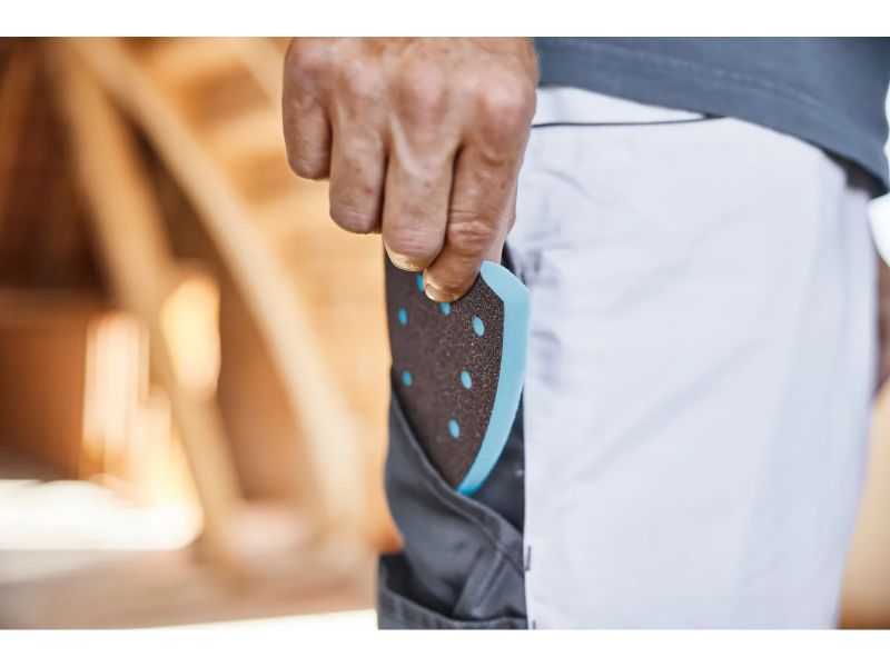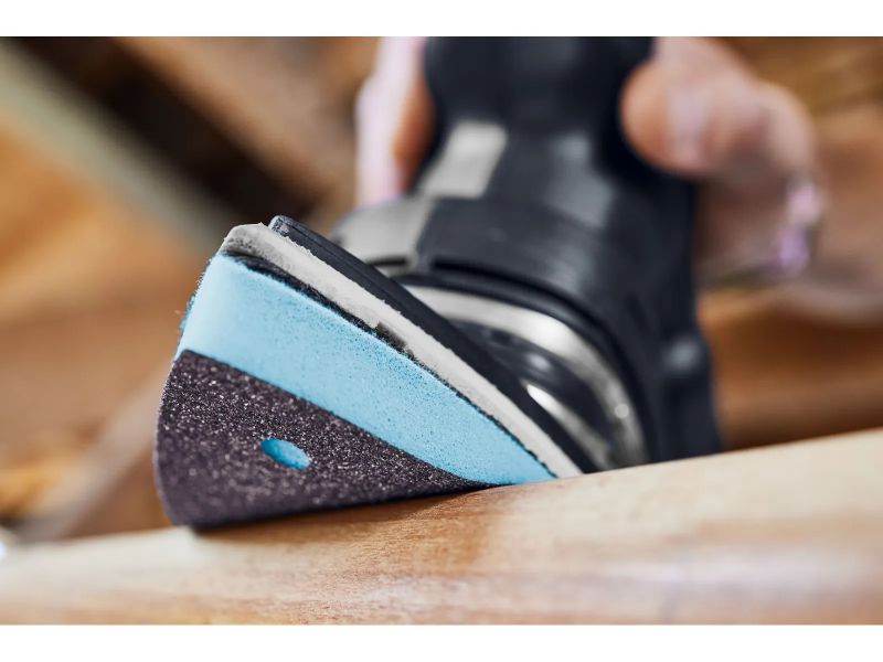 The GRANAT PROfile soft abrasive has been specifically designed for use with sanding machines, making it ideal for the precise handling of profiles, curves, and contours. Its soft foam core, consisting of 13 mm polyurethane, adapts perfectly to the surface of the workpiece. This results in uniform pressure distribution, effectively preventing breakthrough sanding and the formation of grooves.