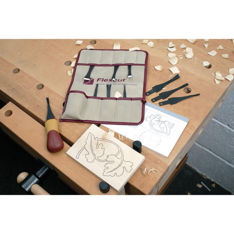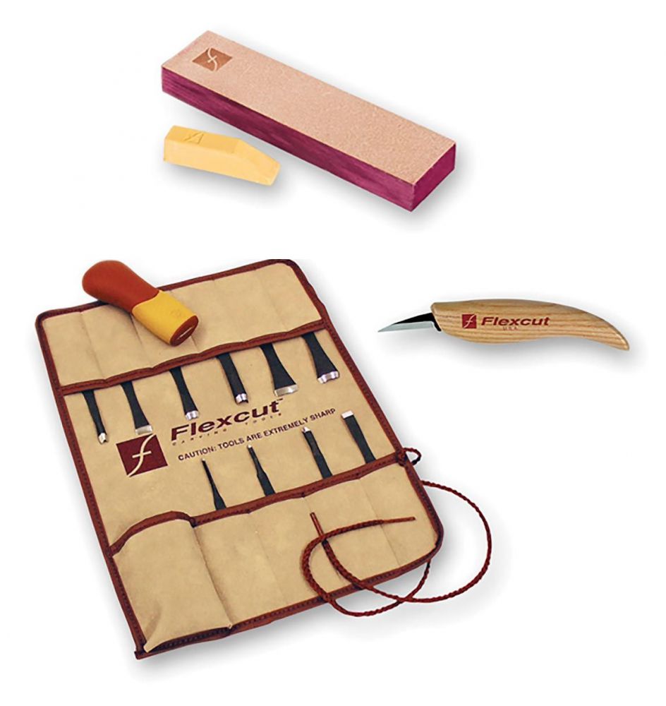 - Package comprises the Flexcut 10 blade Palm Tool SK Travel Set, Flexcut KN13 Detail Knife and the Flexcut Knife Strop