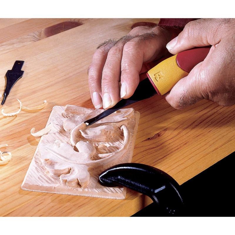 - Flexcut KN13 Detail Knife: This knife shares the same edge-holding qualities as the Flexcut gouges and chisels. The KN13 Detail Knife has a very fine point for making the very narrow cuts associated with detailing. Its straight 38mm blade can accommodate larger stock removal if needed. The comfortable carved handle allows for long periods of carving without fatigue.