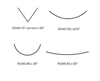 - The set comprises RG400 3 x 5/8", RG401 5 x 9/16", RG402 8 x 3/8" and RG403 70° vee tool x 3/8".