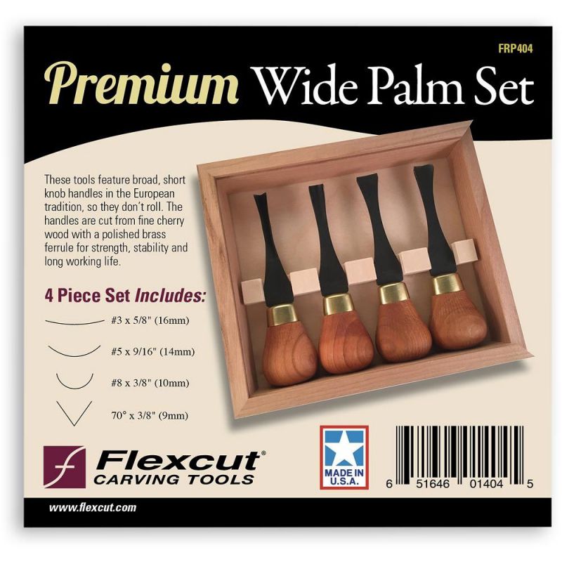 - The Flexcut Premium Wide Palm Set features 4 carefully chosen carving tools with cherry wood palm handles. Every chisel edge undergoes hand sharpening and testing before leaving the Flexcut factory, to ensure the tools perform from the word go.