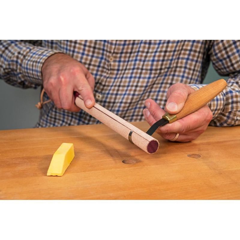 - This round stropping tool is wrapped with a quality leather, which carries the polishing compound. Used on your knife’s bevel after honing, it removes fine scratches and minute burrs, creating that mirror cutting edge. It works equally well on single and double edge hook knives.