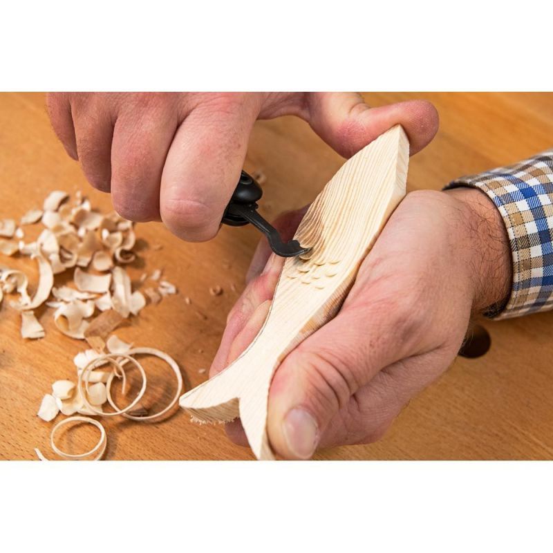 - It features four highly useful blades: a Detail knife, a Straight gouge, a Scorp and a V-Scorp.