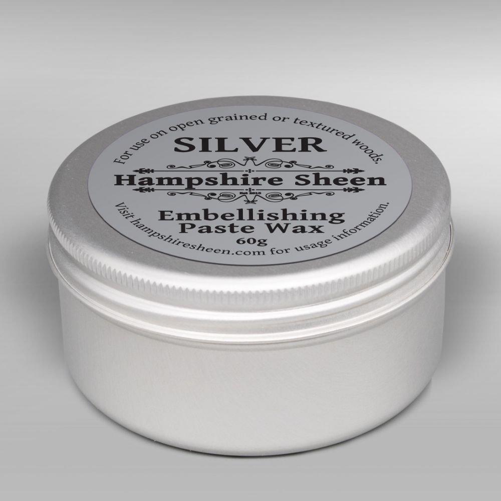 Silver, like the Gold is designed to be used on open grained woods such as Oak and Ash. After turning and sanding, and perhaps colouring, clean the grain with a brass brush (and sanding sealer, especially after colouring) and rub the wax into the grain of the wood. Wait for it to dry, then buff off leaving the surface with a glorious shine and Gold highlighted grain patterns. You can then lightly overcoat it with Hampshire Sheen Microcrystalline for a tougher finish. The carnauba and microcrystalline waxes are tough and hard wearing. In testing, no amount of hard rubbing with finger tips or cloth could remove the finish easily. For use on decorative wood only.