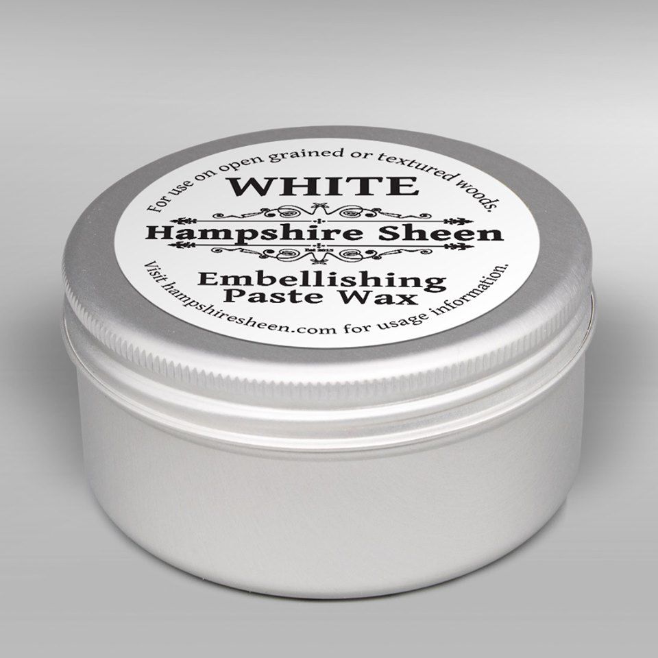 White Embellishing Wax is designed to be used on open grain woods such as oak or ash and works brilliantly to highlight textured elements on tighter grained woods. It is very regal in colour and certainly bold!! Use in conjunction with the Intrinsic Colour Collection for stunning results. Supplied in a 60g screw lid tin. Apply liberally and buff to a gloss. There’s no need to wait overnight for a gilt cream to dry as this product can be overcoated with Hampshire Sheen High Gloss, Original or Microcrystalline waxes within minutes of application.