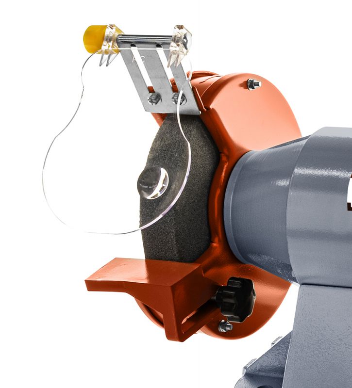 It features a powerful 900 W motor, adjustable protective eye shields and tool rests. The ideal workshop companion for sharpening tools, removing surface coatings, de-burring sharp edges, and much more.