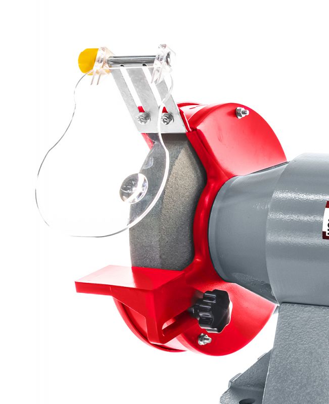 Holzmann DSM200DS is an industrial grade heavy duty 200 mm bench grinder most suited to the professional workshop. It features a powerful 900 W motor, 200mm grinding wheel (K60 grit), 200mm x 32mm wire brush wheel for finishing work, adjustable protective eye shield with magnifying feature. The ideal workshop companion for sharpening tools, removing surface coatings, de-burring sharp edges, and much more.