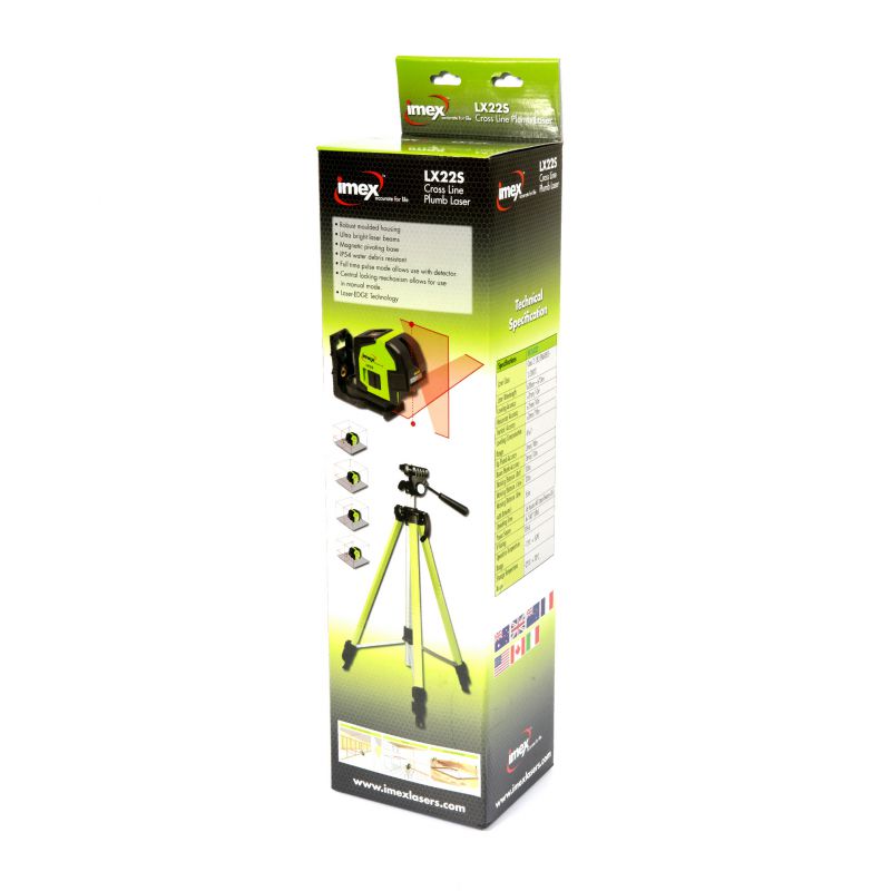 The Imex LX22GS Green Beam Crossline Laser Level projects sharp, bright lines across any room with a high level of accuracy. Features include a locking pendulum, which is both a very important safety feature to protect the integrity of the laser level and a helpful feature for projecting lines out of level when needed. The LX22 represents incredible value for money and is perfect for any tradesperson or serious DIY enthusiast who is looking for a professional line laser at a low price point.