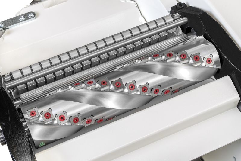 - Integrated spiral planing shaft fitted with 17 × 4 -fold carbide cutting inserts (68 in total).