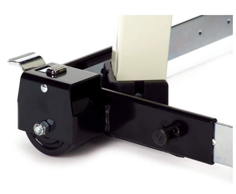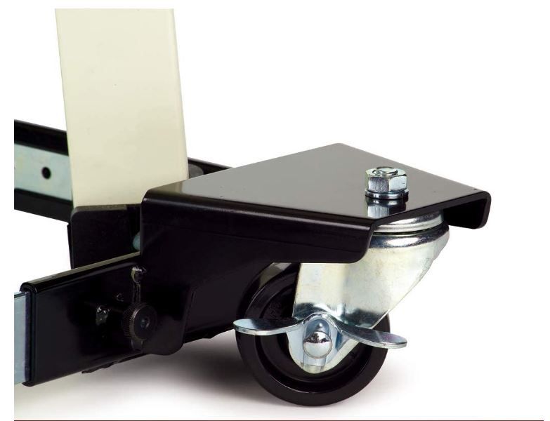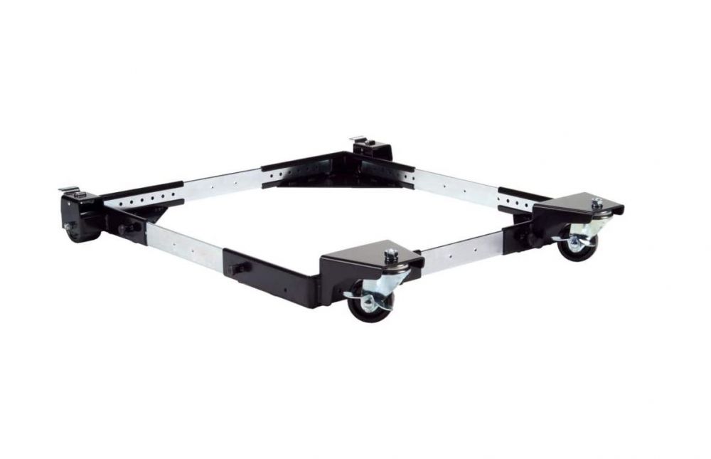 A choice of two all-steel bases, adjustable for size, with fixed wheels on the back corners and two lockable castoring wheels on the front. The smaller one will fit machine bases from 460mm to 710mm and take a weight of 250kg whilst the larger one takes bases from 610mm to 860mm and a load of 540kg.