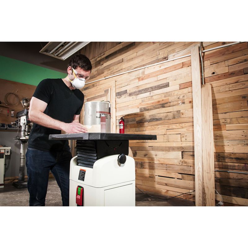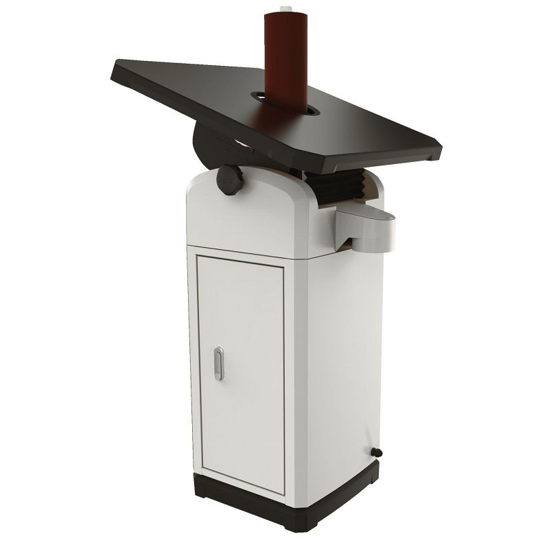 - Sander spindles, abrasive sleeves and table inserts can be kept clean in the machine base cabinet