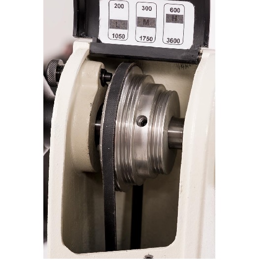 - Infinitely variable speed control with 3 belt speeds, from 200 to 3'600 rpm