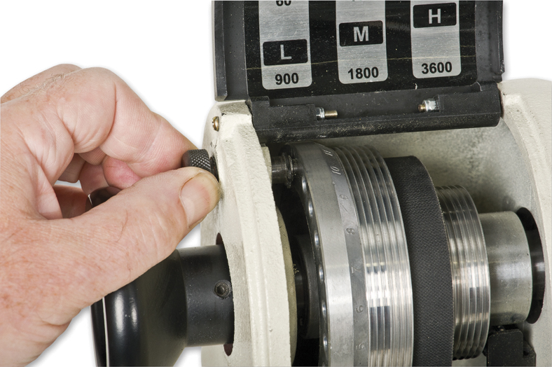 - Infinitely variable speed control with 3 belt speeds, from 60 to 3'600rpm (JWL-1221VS-M)