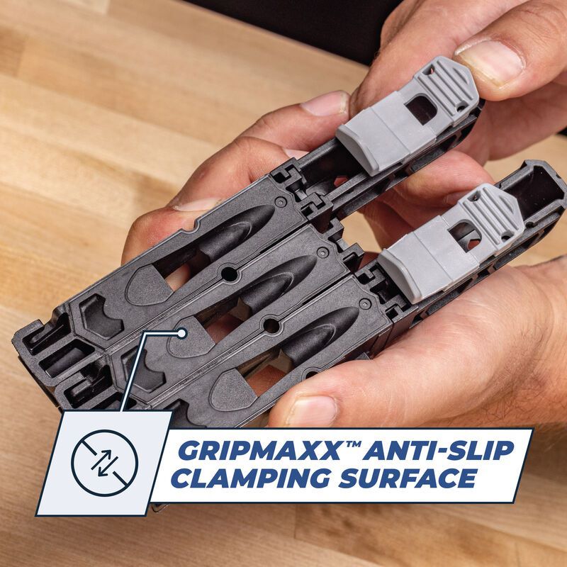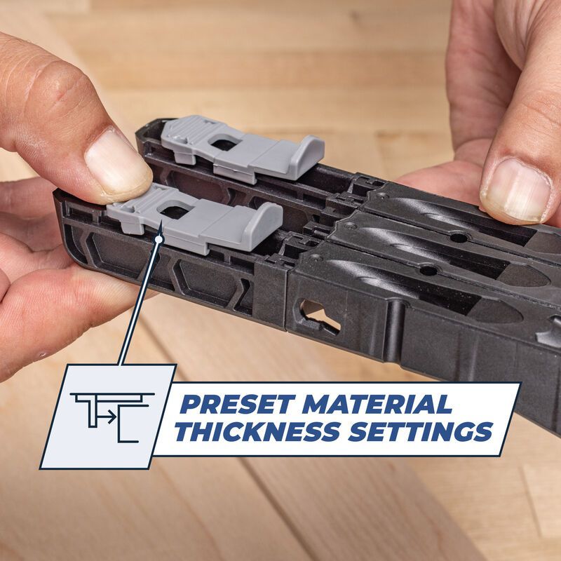 - The included material thickness gauge and easy-set drill bit make setup simple, and the GripMaxx™ anti-slip base holds the jig precisely in position while you drill perfectly positioned pocket holes every time.