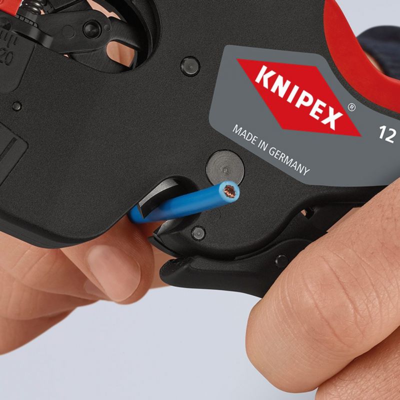 - Precise stripping: automatically adapts to the respective cable diameter and ensures consistent stripping lengths with the adjustable length stop especially with repetitive work.