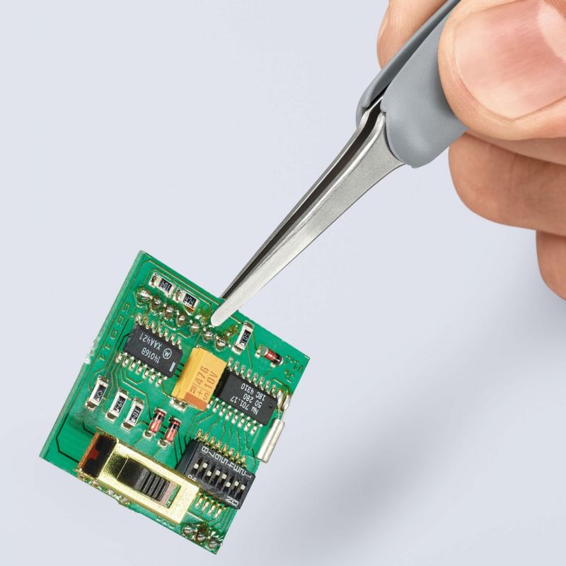 - Precision Tweezers with rubber handles ESD Electrically dissipative coating: Universal tweezers in the ESD version equalize differences in electrical potential between their user and the workpieces in a controlled manner. Maximum comfort for frequent use.