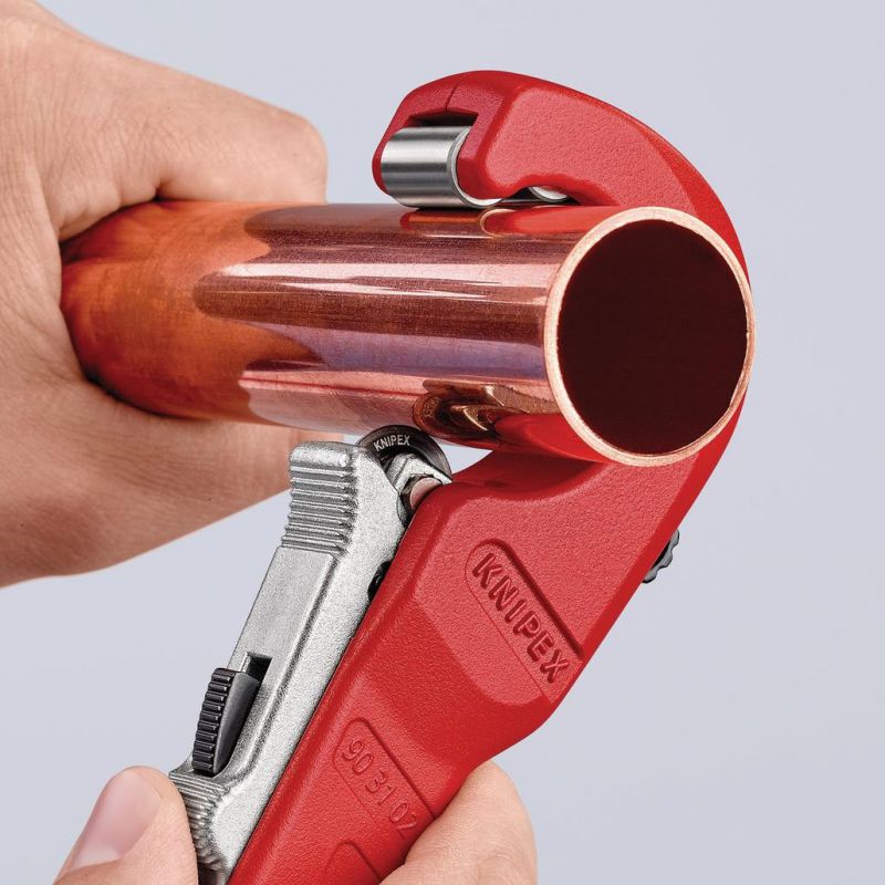 - 90 31 02 SB KNIPEX TubiX® Pipe cutter QuickLock one-hand locking mechanism: independent holding and clamping on the tube.
