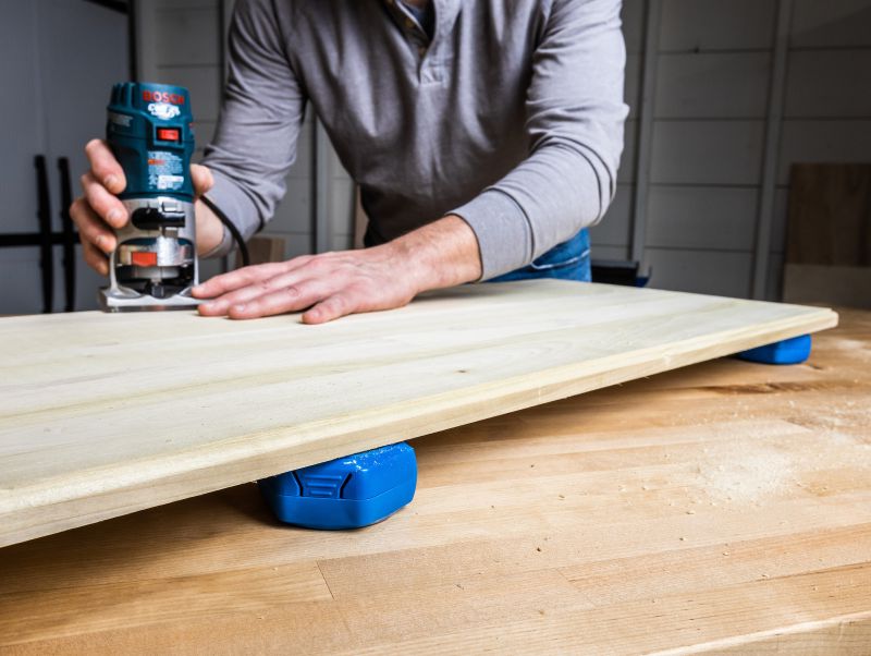 - Elevating the material makes routing edges easier with added clearance for the router bit. The height also gives clamps room to fit the clamp head under the workpiece – which is useful for drilling pocket holes or assembling your project.