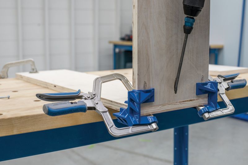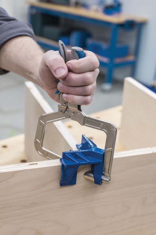 - The 90° Corner Clamp helps hold assemblies like boxes, cabinets, drawers and cases together to ensure that you get strong, tight-fitting assemblies—whether you’re using Kreg pocket-hole joinery, or another method. The clamp’s V-wedge jaws grip the mating pieces securely, ensuring that the pieces sit at precise 90° angles while you drive in Kreg Screws, or even another type of fastener, such as a nail or wood screw.