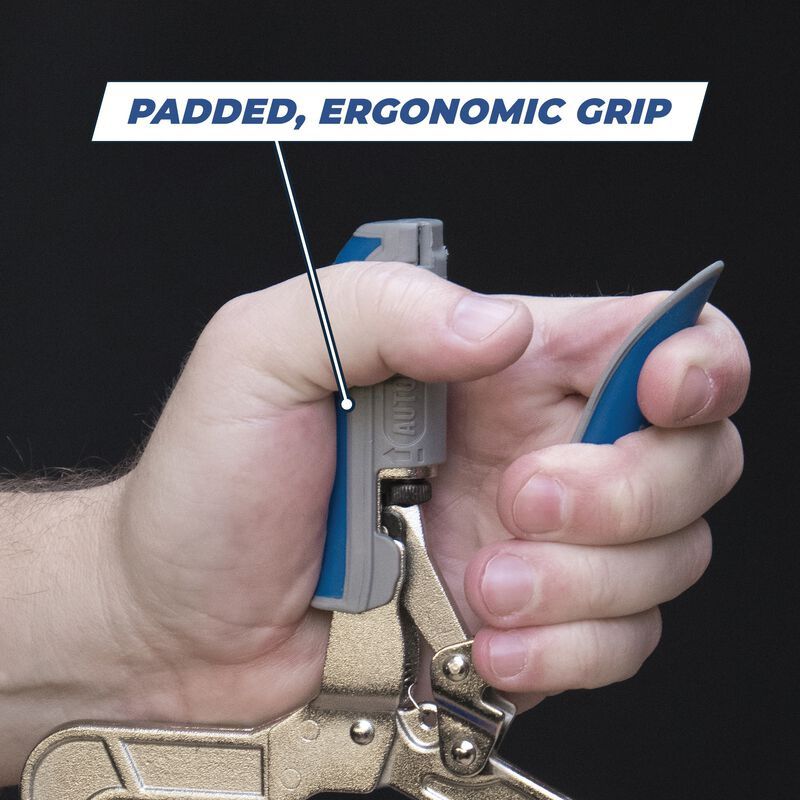- Thanks to Automaxx® auto-adjust technology, all you have to do is squeeze the clamp handles. The clamp will automatically close with the amount of pressure you have set, regardless of the material, whether you’re using thin plywood for drawers, or materials up to 1" thick.