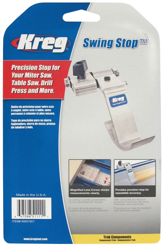 - Adaptable Design: The Swing Stop is designed to work with Kreg Top Trak and Heavy-Duty Trak, so you can build your own fence, install the track, and use the stop. That gives you options and means you can easily use the Production Stop on many types of tools. The stop simply drops into the track from the topside, allowing it to be quickly removed and repositioned.