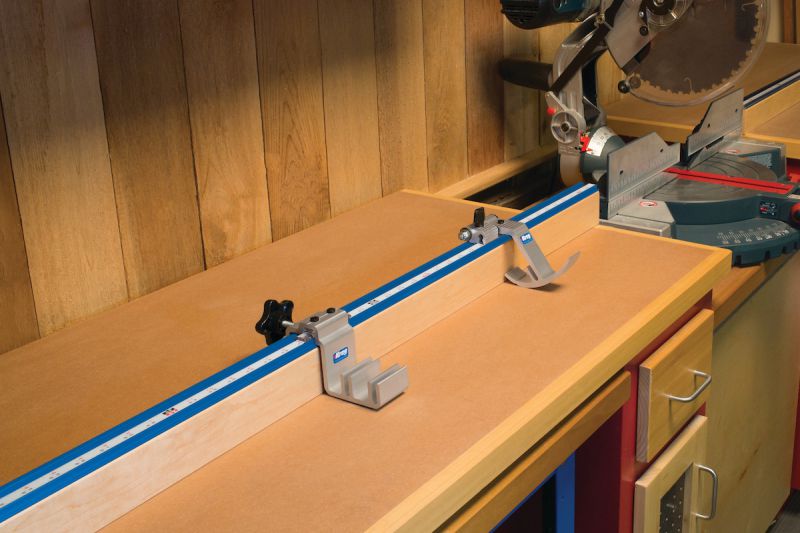 Take the guesswork—and your tape measure and pencil—out of cutting wood to length. Our Precision Trak and Stop Kit allows you to turn a Mitre saw into a precise cutting system. Simply position the stop at the dimensions you'd like to cut using the precision lens cursor, place the board against the stop, and cut to that exact length every time. You build the support wings out of plywood (or another sheet material), and then add the Trak. Outfitting your saw to cut perfectly-sized workpieces couldn’t be simpler!