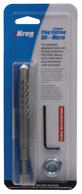 - This specially designed bit chucks into any drill, and fits into the hardened-steel drill guide in the Plug Cutter to produce plugs in the correct diameter to fit Micro-Pocket™ Kreg Jig® pocket holes.