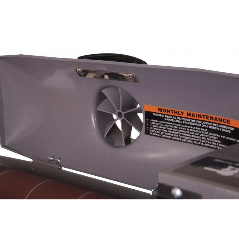 Simple alignment feature : Just one nut adjusts the conveyor to parallel the sanding head, making aligning the conveyor to the sanding head fast and easy.