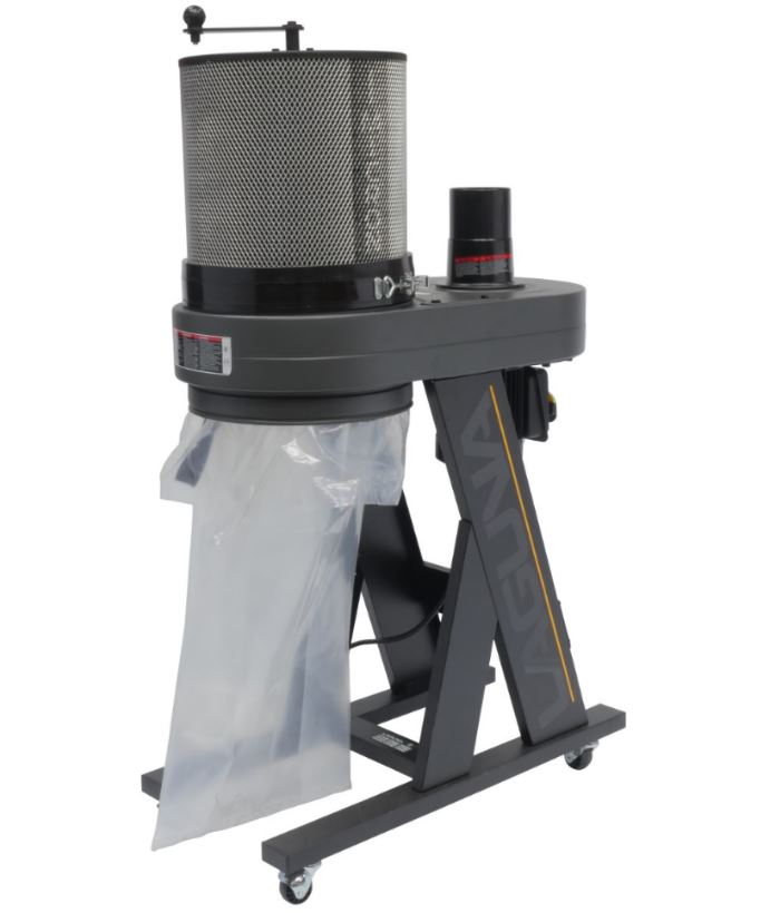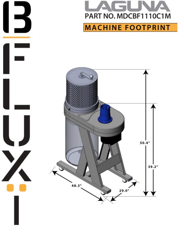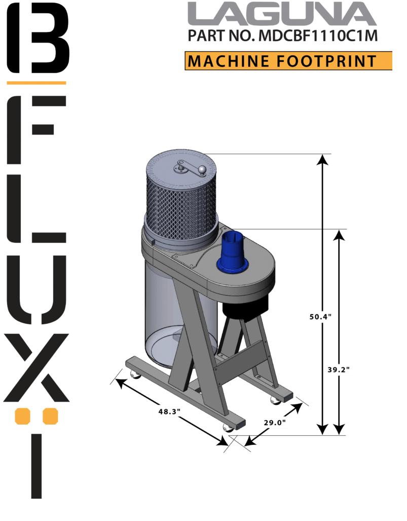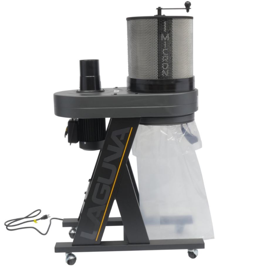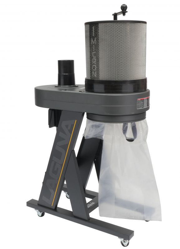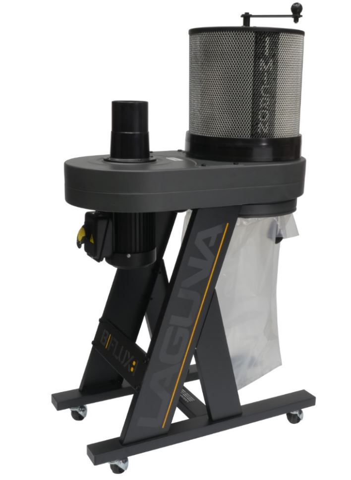 The best looking single stage dust collector to hit the market in years. Sleek design and power to match. No more fumbling with a steel band to mount your lower bag, the bflux comes with a patented Snap-Band that makes changing the bag a breeze. Unlike most 1HP units the bflux feels solid & has a low dB rating. The horizontal dust chute provides optimum airflow & can swivel 180° to make the 4″ outlet face downwards.