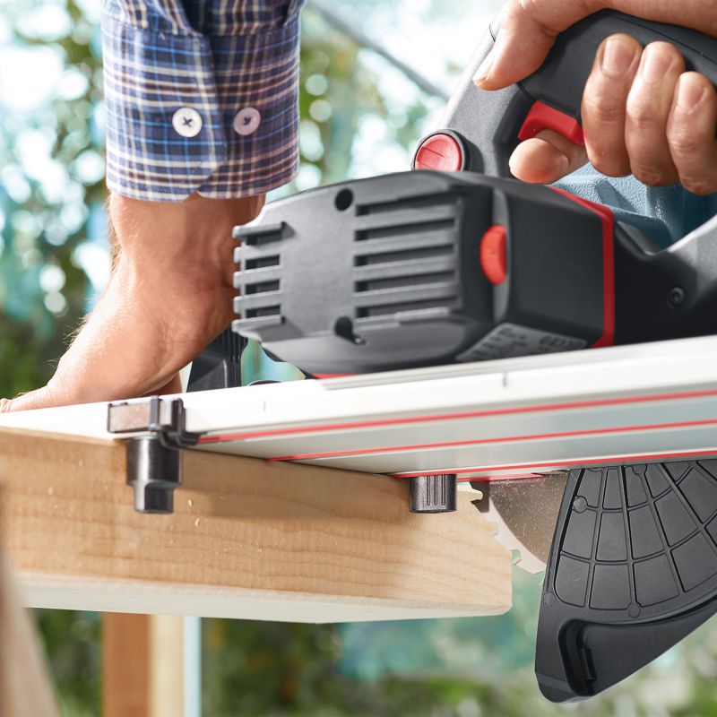 - It is no longer necessary to unscrew the riving knife – the FLIPPKEIL offers you optimum user-friendliness and safety when plunge cutting.