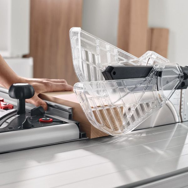 SAFETY TAILORED TO PRACTICAL NEEDS: The new protective hood with integrated working light completely covers the saw blade, thus increasing user safety.